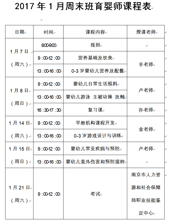 注:本课程表是初定课表,根据实际开班及老师情况或许作适当调整,若无另外通知,按此表执行。