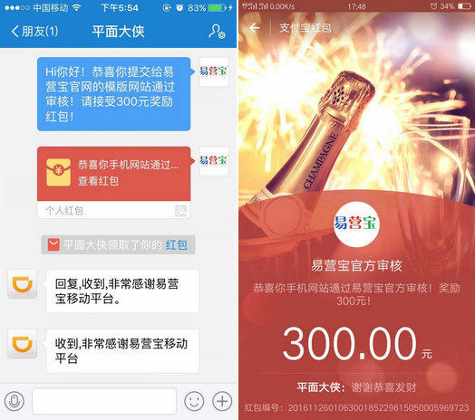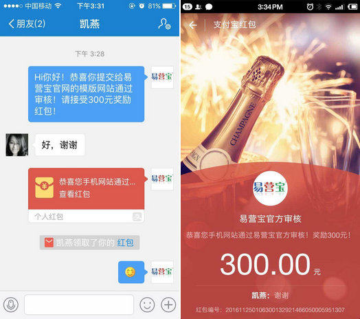 易营宝移动网站模板征集活动正在火热进行中,截止到今天,已经有众多的网站设计师报名参加网站模板设计,本周有2个新模板通过了审核,获得了300元红包奖励~~