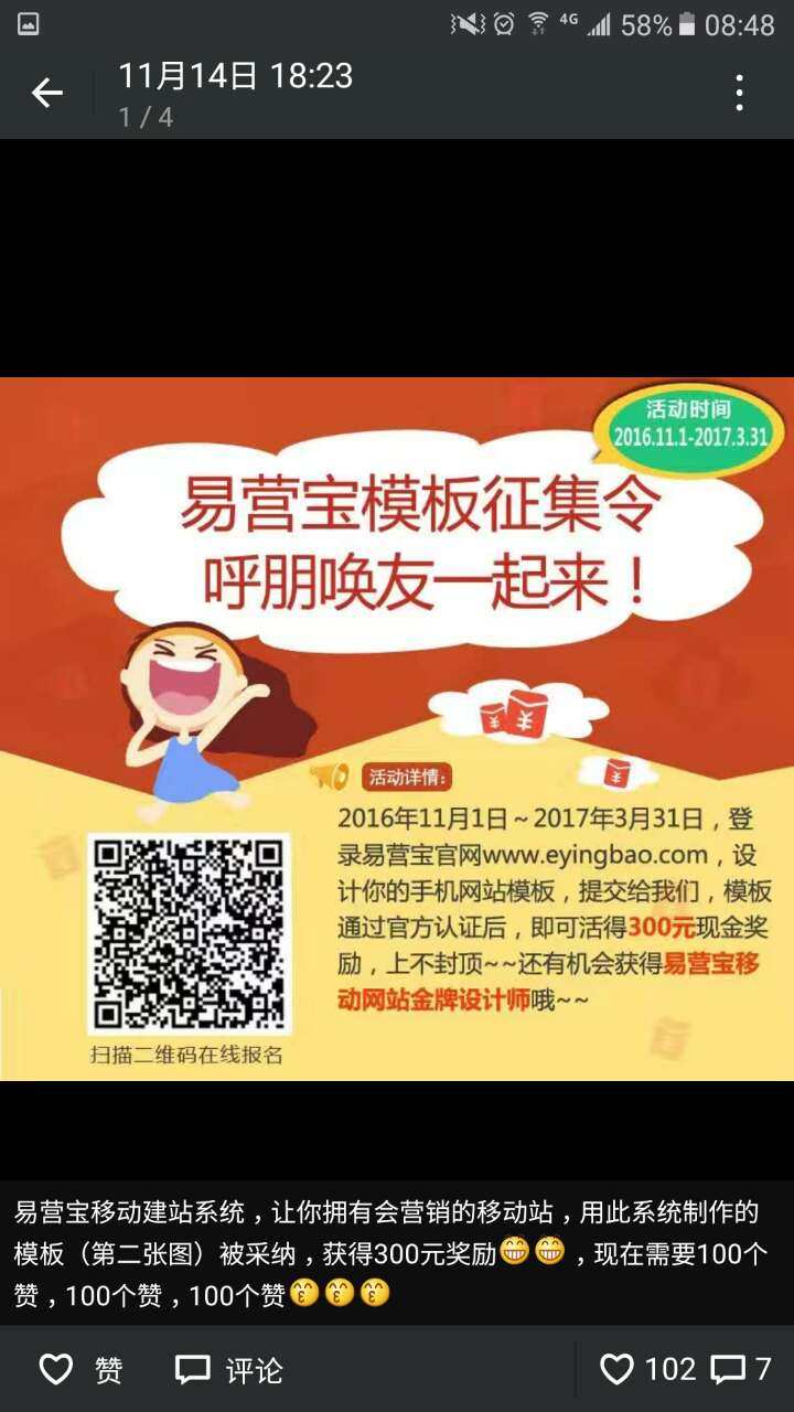 模板通过审核的前100名设计师,可将审核认证后模版二维码,以及带有此活动信息的图片,分享到朋友圈,集齐100个赞以上(含),即可获得100元额外奖励哟~