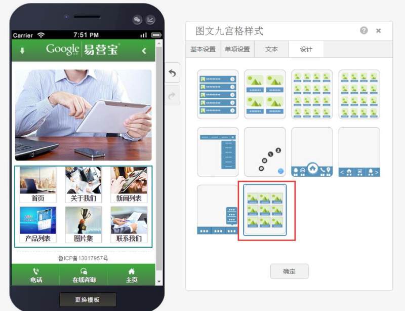 目前,我们提供的网站导航样式已有十种,包含列表、网格、水平、浮动、底部等样式,设计师可以跟进网站风格或功能需求进行选择。