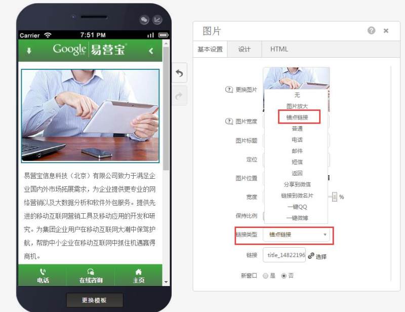 通过锚点链接,可以使访问者在点击图片时,页面直接跳转到当前页面的其他位置,如跳转到当前页面的留言板上或某个功能区的标题上,减少客户滑动屏幕的动作。