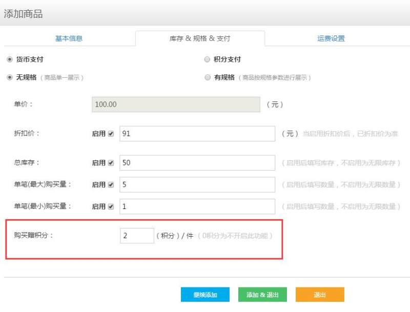 也可以在商品管理里,添加商品页面,为单个商品设置赠送积分的比例