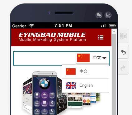 手机网站新增多语言控件,实现不同语种网站间的跳转。