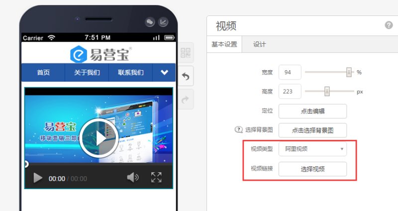 视频类型选择阿里视频时,用户可以免费上传十分钟的视频,上传成功后有易营宝系统自动压缩,在保证视频清晰度的前提下提高视频的加载速度。