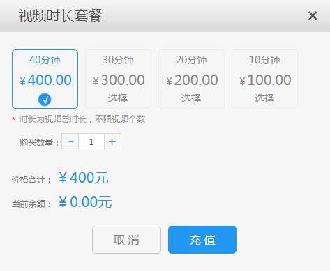 如果客户的视频长度超过10分钟,可直接在线支付购买视频套餐。
