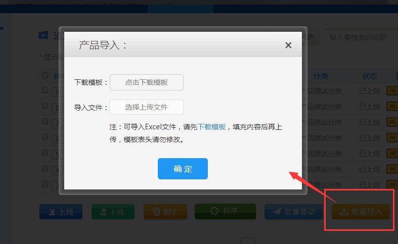 管理员按导入模版可一键快速导入不同产品分类、标题、关键词等内容。