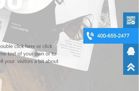 侧边栏可悬浮在页面不同位置,按需可添加多个需求项,如电话、邮箱、客服、二维码等。