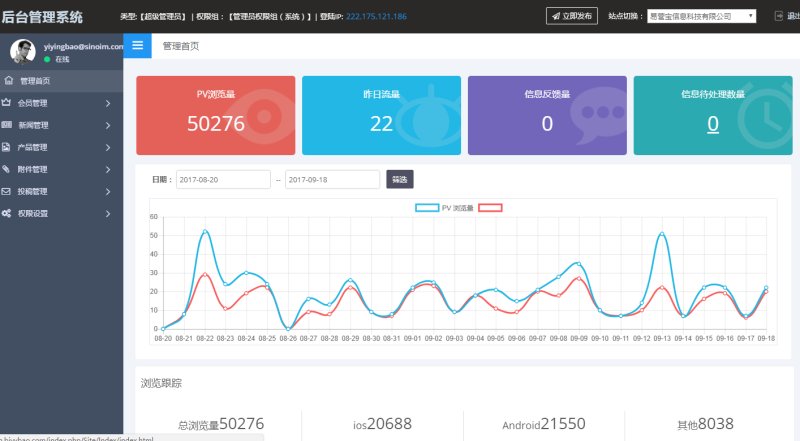 可针对不同的账号设置不同的权限,对网站新闻、产品、分类及会员进行管理。