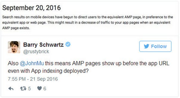 这意味着就算部署了APP应用内搜索功能(App Indexing),AMP页面的也会优先进行展示。