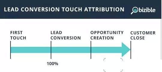 线索转化互动归因模型通常会与首次触点模型混淆。这是因为围绕销售线索的产生而建立的营销分析系统,例如一个营销自动化的平台,销售线索被创建的那个session是被跟踪和监测到的第一次会话。在这样的系统里,如果真正的首次互动是没有标识的,那其实就相当于这次互动是不存在的。