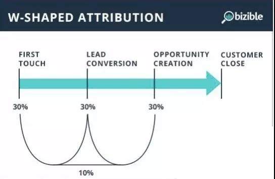 在使用该分配模型时,W型归因模型强调了用户购买旅程中,营销渠道可以影响到的三个关键的触点。