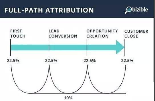 在该模式中,四个关键阶段的触点都会得到22.5%的权重分配,剩下的10%将会平均分配到其他触点上。