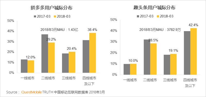 拼多多、趣头条得以爆发式增长,均因为成功吸引三四线城市用户。